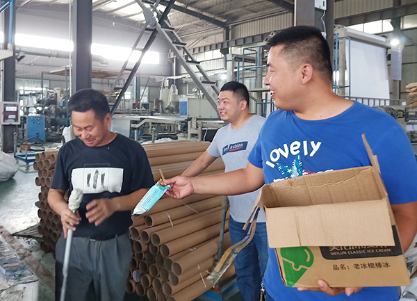 炎炎夏日,熱浪滾滾,一年一度的高溫如期而至,當(dāng)大家都在吹著空調(diào),享受美食時,有這么一群人,不懼高溫酷暑的考驗(yàn),依然堅(jiān)守在自己的崗位上,為歐西下半年生產(chǎn)正常運(yùn)行而奮戰(zhàn),他們奮勇拼搏的精神,令人敬佩。 連日的高溫是對生產(chǎn)一線員工們在體力、精力各方面的極大考驗(yàn),也牽動著歐西管理層領(lǐng)導(dǎo)的心。 公司及時為奮戰(zhàn)在一線的工人送上冰棍、毛巾、香皂等物品,以感謝他們的堅(jiān)守與付出,生產(chǎn)部經(jīng)理將公司精心準(zhǔn)備的高溫慰問品送到他們手中,并叮囑班組長合理安排高溫天氣下工人的工作計(jì)劃,加強(qiáng)高溫期間的安全生產(chǎn)檢查力度,確保工人安全的工作環(huán)境,多措并舉戰(zhàn)勝酷暑。