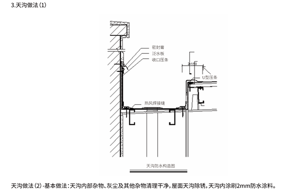 2.7TPO覆布的選擇(水泥基層濕鋪法) 覆布選用的是丙丙(PP)長纖針刺無紡布,針刺的作用是將纖網加固成蓬松的布。 耐腐蝕;抗菌、抗化學藥劑:丙丙無紡布屬化學鈍性物質,不蟲蛀,抗菌、堿腐蝕、成品不因侵蝕而影響強度。 與基層粘結度高:水泥粘結漿料滲透到基層,通過微裂縫、水化毛細孔形成栓卯,同時滲透到蓬松的無紡布內體,通過水泥粘結漿料把卷材與基層結構形成不可分的一體。滿粘率達百分之100,有效的杜絕竄水,達到防水的完美效果。 卷涂結合:涂料彌補了基層的缺陷,形成一道剛型防水層,粘結柔性的卷材,剛性與耐腐蝕卷材的結合,使防水壽命永不失效; 2.8維修做法