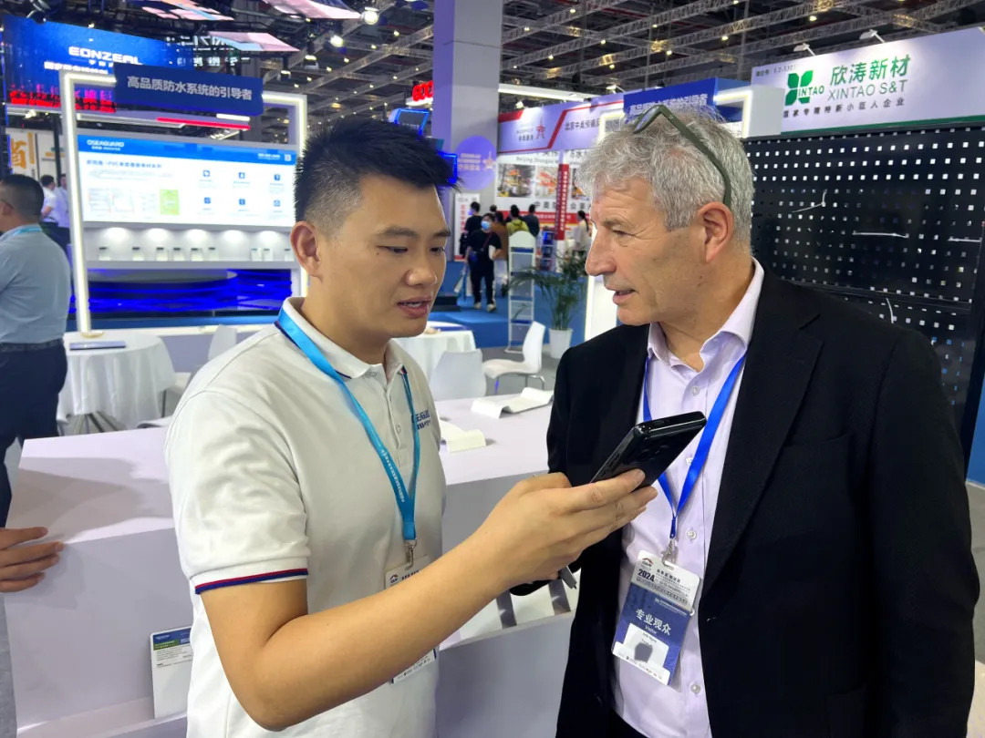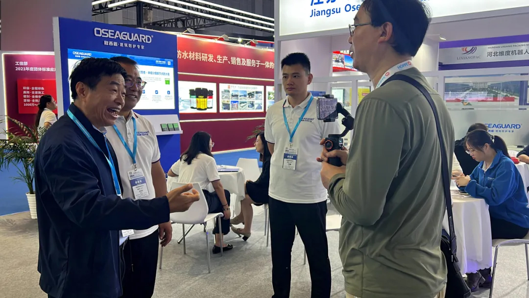 并且在現(xiàn)場對歐西盾防水董事長王洪波先生進(jìn)行了采訪。通過沈教授和大隱于水先生的專業(yè)視角和影響力,讓更多人深入了解了歐西盾防水。無論是其先進(jìn)的防水產(chǎn)品,還是專業(yè)的企業(yè)理念,都得到了充分展示。
