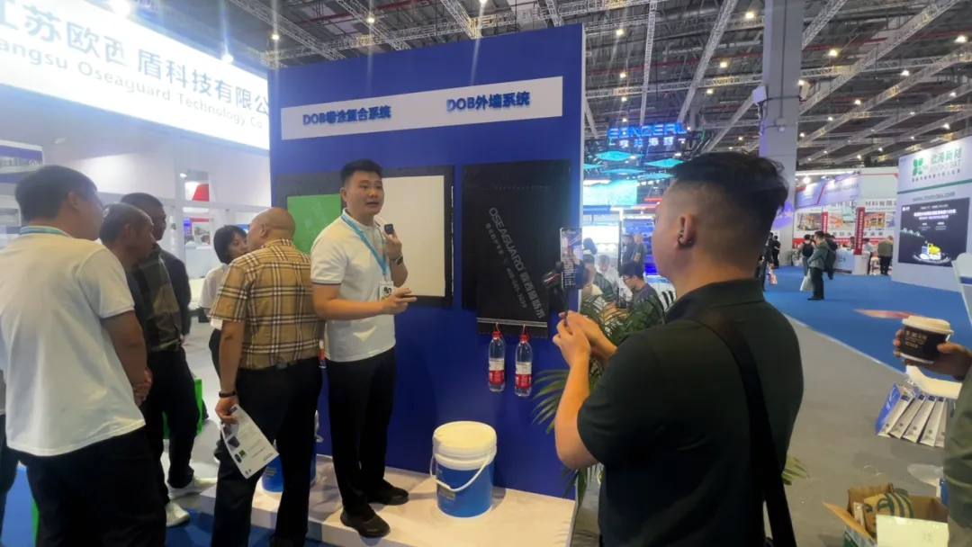 行業(yè)著名的大隱于水先生蒞臨歐西盾防水展位。市場總監(jiān)丁彥臻對公司的金屬屋面防水系統(tǒng)及新型產(chǎn)品DOB快粘持粘涂料進(jìn)行講解,現(xiàn)場氛圍極其熱烈,分享內(nèi)容極具含金量。