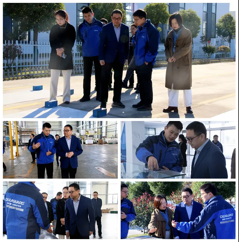 在市場總監丁彥臻的引領下,中韓石化董事長劉百強一行參觀了歐西盾廠區,了解了TPO防水卷材從原材料選取到成品制造的生產線,對歐西盾在生產工藝上的嚴謹態度、精湛技藝以及高效管理表示贊賞。